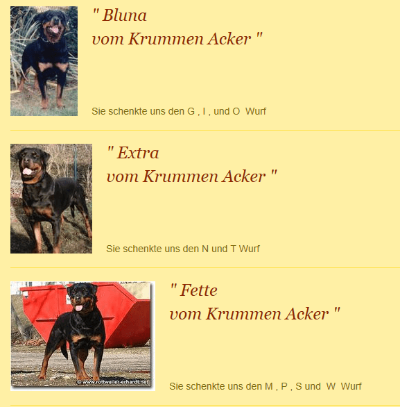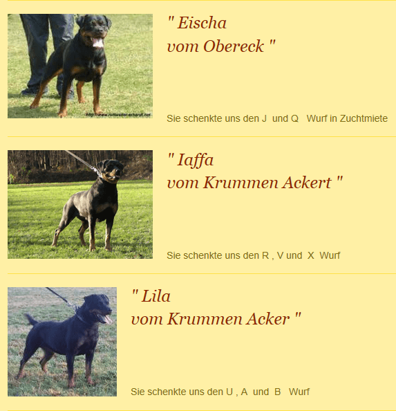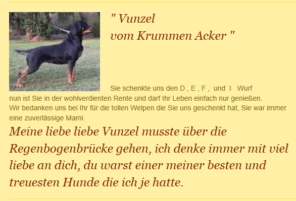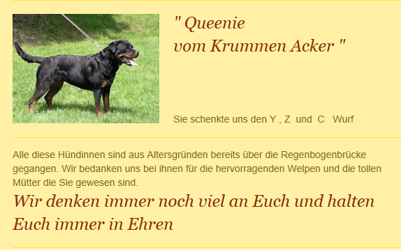 Elza von der Bleichstraße ist nun in Rente gegangen ,wir bedanken uns bei Ihr für die Welpen die Sie uns